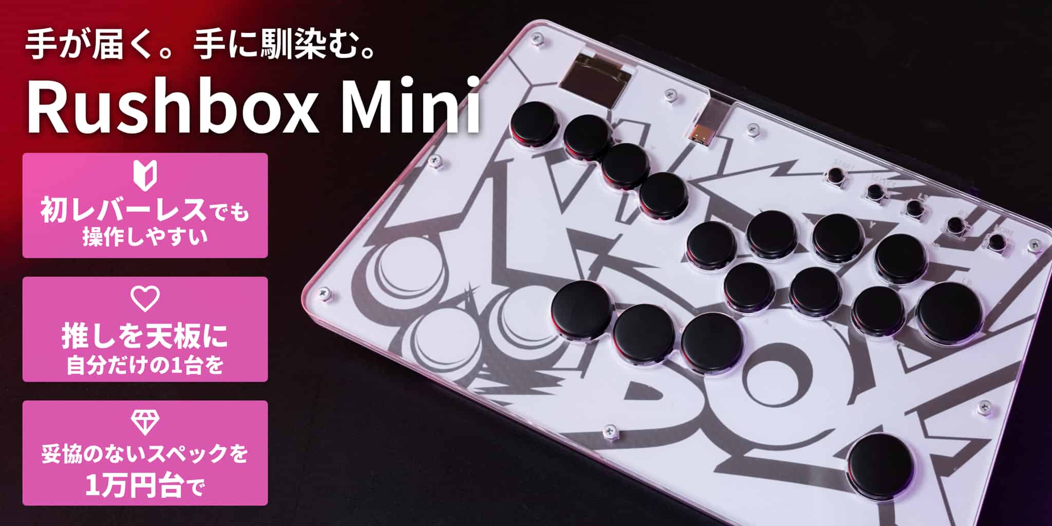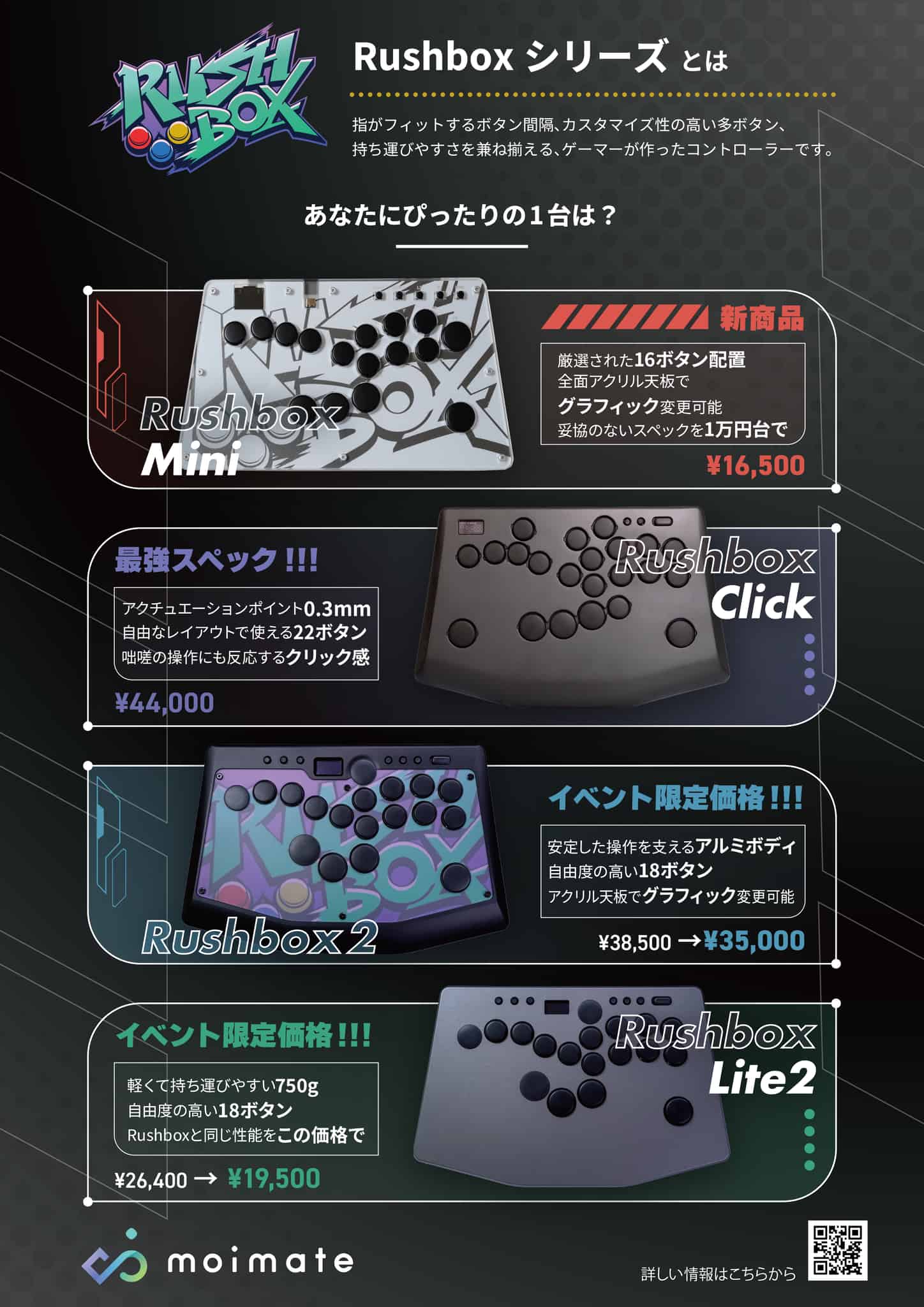 格闘ゲーム用レバーレス「Rushbox Mini」関西イベント初販売!Rushboxシリーズ全機種さわって、あなただけの1台を探そう。会場限定販売あり。