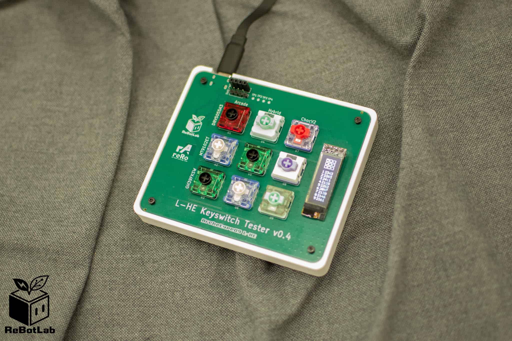 れぼっと( https://x.com/ReBot_dev )が個人で手がけるブランド「ReBotLab」による出展です。基板からケースまで自分で設計した、ストロークわずか1mm・ラピッドトリガー対応のロープロファイル60%磁気キーボードを先行販売予定です。詳細・続報はXまたはHP (https://rebotlab.net/ )をご確認ください。